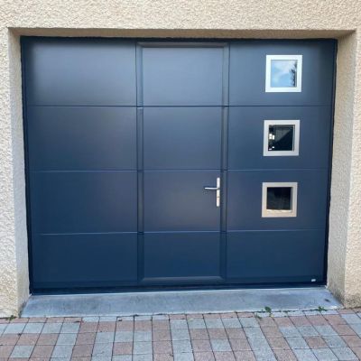 - Le type de porte et son type d’ouverture : sectionnelle, sectionnelle latérale, battante ou à vantaux, imposte,…