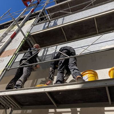 - L’outillage nécessaires aux façadiers : projeteuse, nettoyeur haute pression, pulvérisateur électrique, surfaceuses, fils chauds, tables à découpe de laine de roche, aspirateurs, taloches, chemins de fer,…